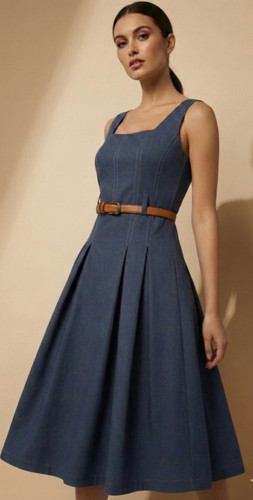 پیراهن زنانه تیلا مدل پنبه دیپلمات – پک ۸ عددی عمده تکرنگ آبی (کد 90106)