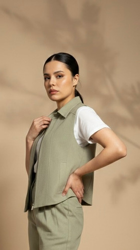 وست زنانه لینن تیلا – پک ۶ عددی عمده تکرنگ سرمهای (کد 30183)