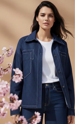 جکت زنانه جین تیلا – پک ۸ عددی عمده تکرنگ در رنگهای سرمهای و کرم (کد 40128)